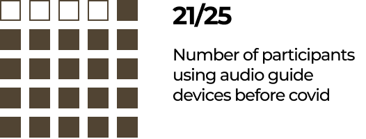 A survey was conducted on 25 participants to identify which products or features are currently using. This will help to determine the needs of the user to improve the experience at art venues nowadays.