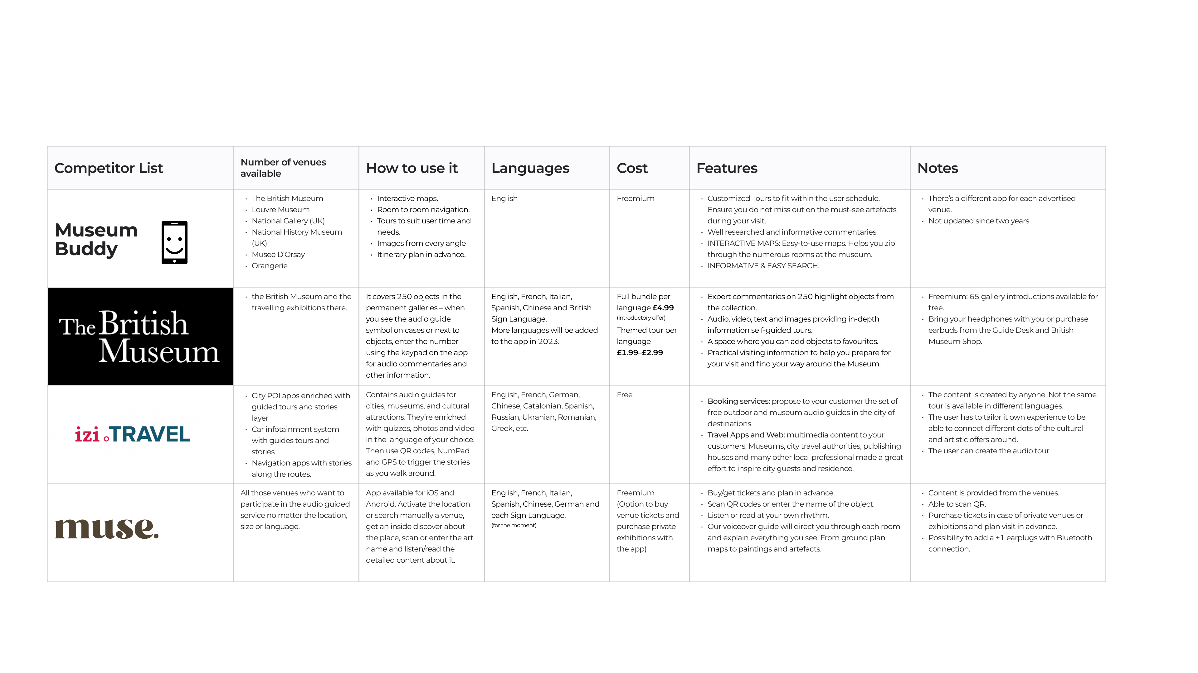 Initial research focused on better understanding users and venues’s needs related to solving the lack of the audioguided service and missing an important part of the whole interaction between both.