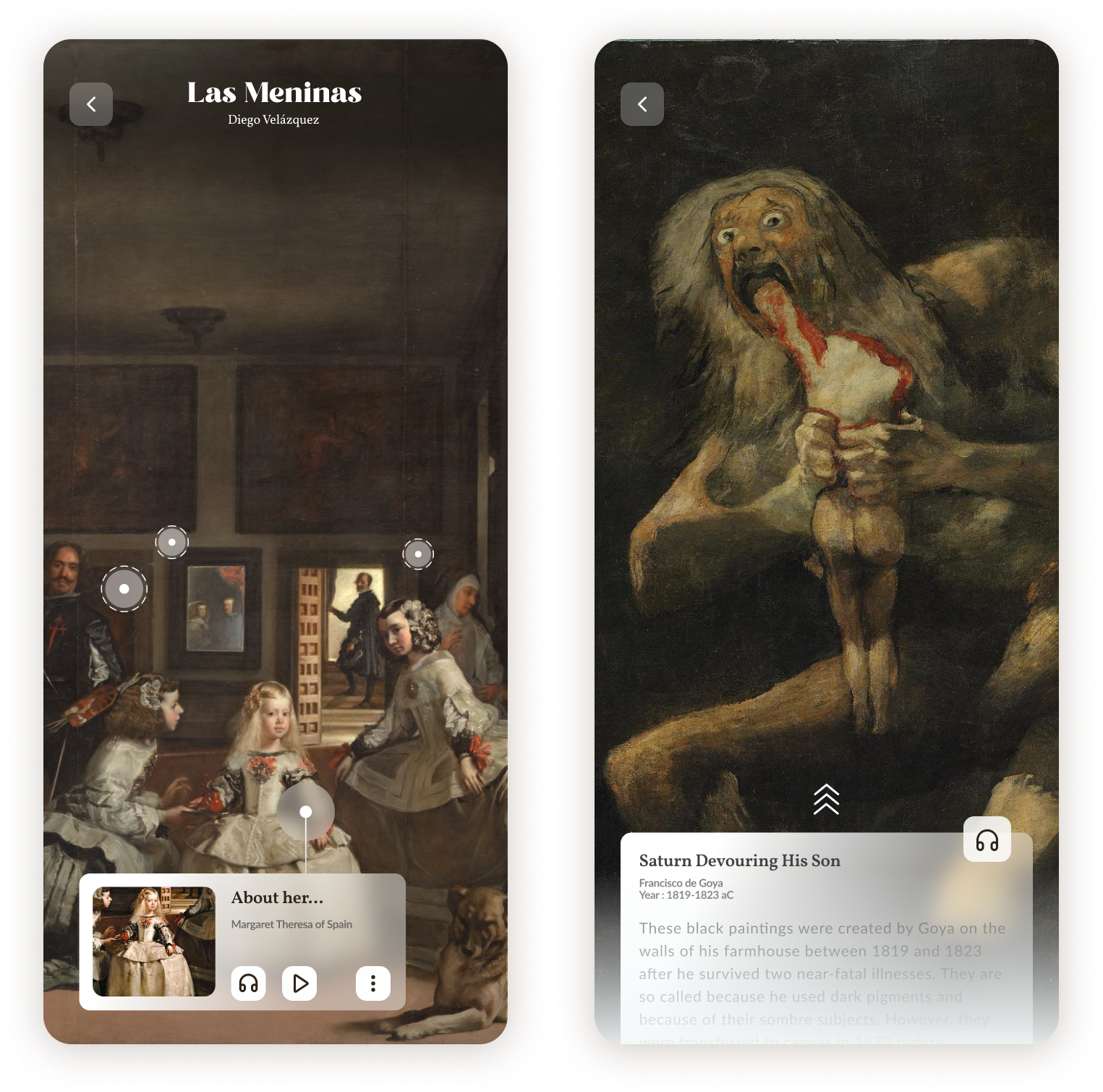 After finding or scanning the art object the user is able to listen and/or read the tour with all the detailed content marked in the screen.