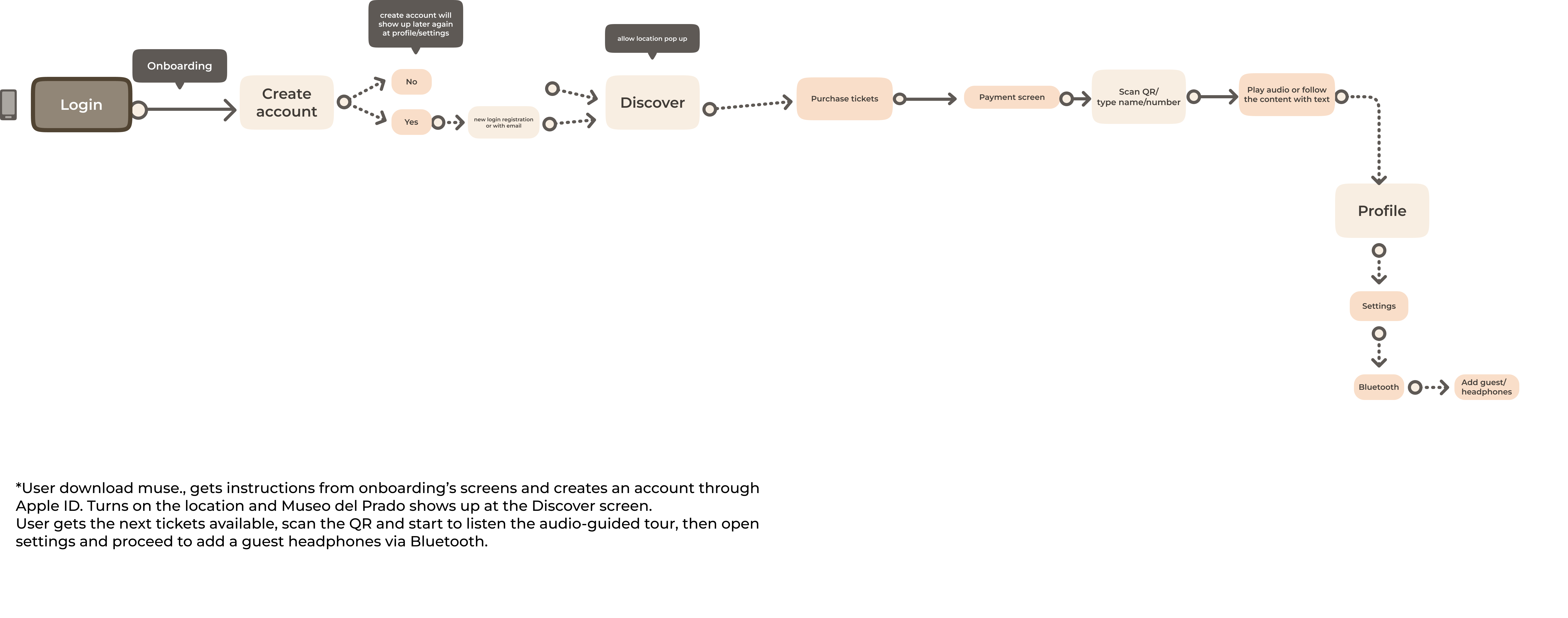 The primary user flow is the process of discover, scan and follow the tour successfully.